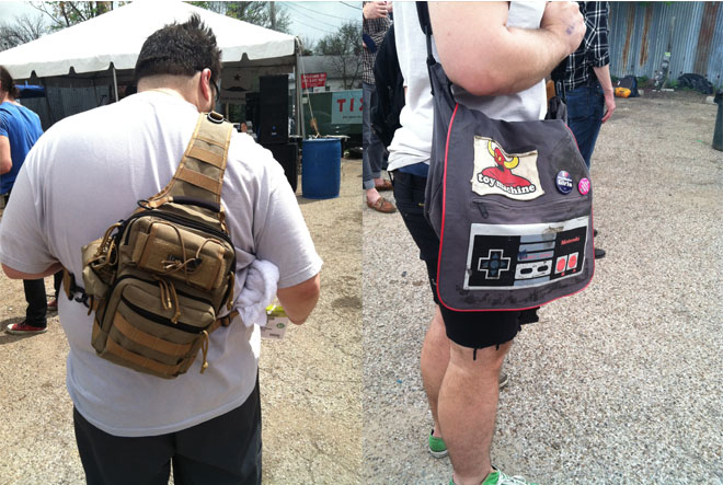 Festivals and events are awesome for checking out carry. Everyone rocks up with a day’s worth of stuff, and it’s often creative and interesting folk. So Taylor figured he’d snap away and share some of the pieces for your home viewing pleasure.