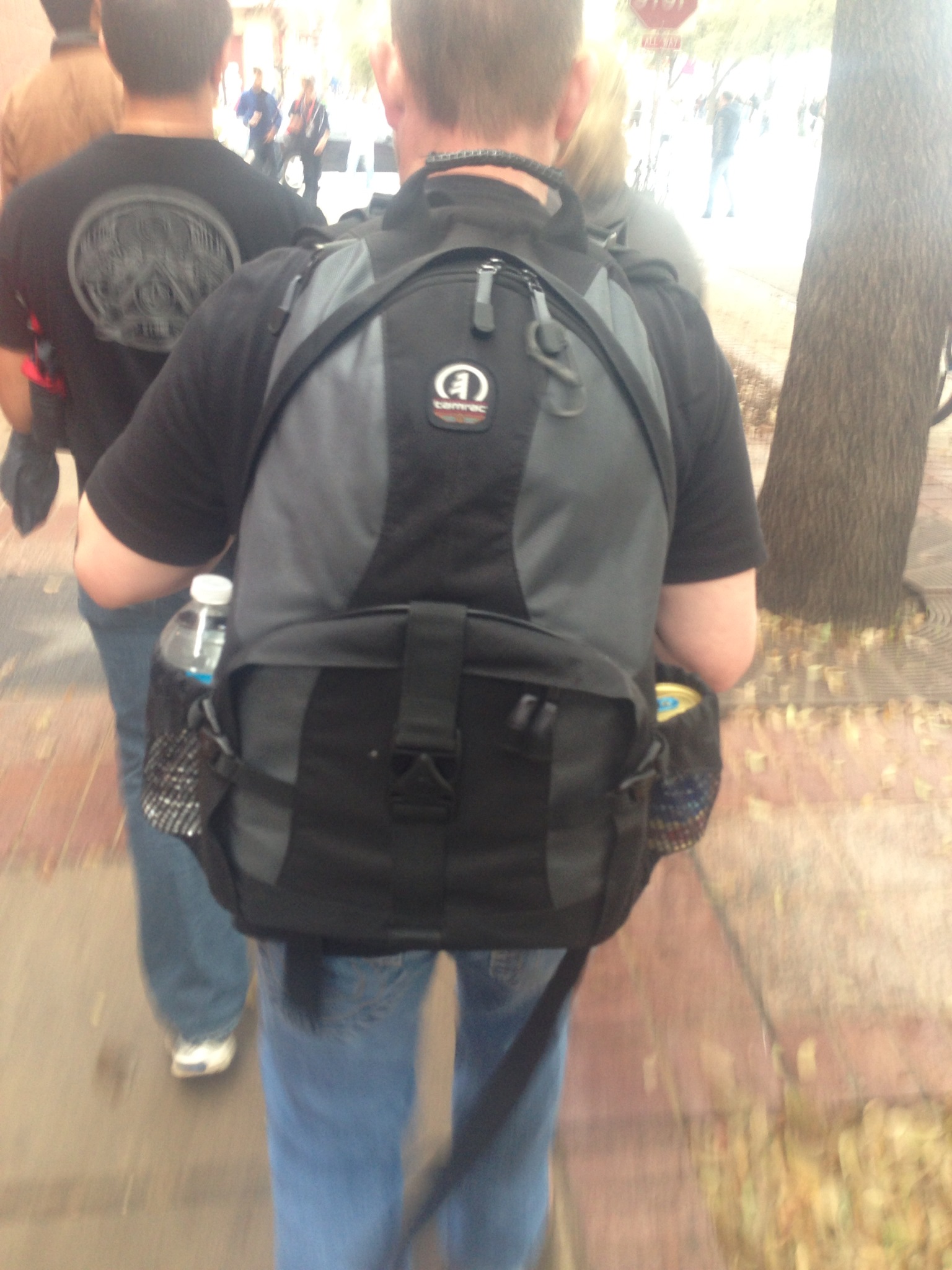 Festivals and events are awesome for checking out carry. Especially SXSW, as it more or less becomes the center of the world for about 2 weeks, with nearly 500,000 attendees coming from all around the globe to explore the fields of Interactive, Film, Technology, Social Media, Film, Music and much more. If you’ve heard about it, it has either been at SXSW or invented at SXSW. Everyone rocks up with a day’s worth of stuff to trek through the city of Austin during SX, and it’s often creative and interesting folk with some unique tastes… and we want to look at their carry. We covered this in 2012, so we thought it would be fun to do a Carry Trainspotting SXSW 2013 edition as well.