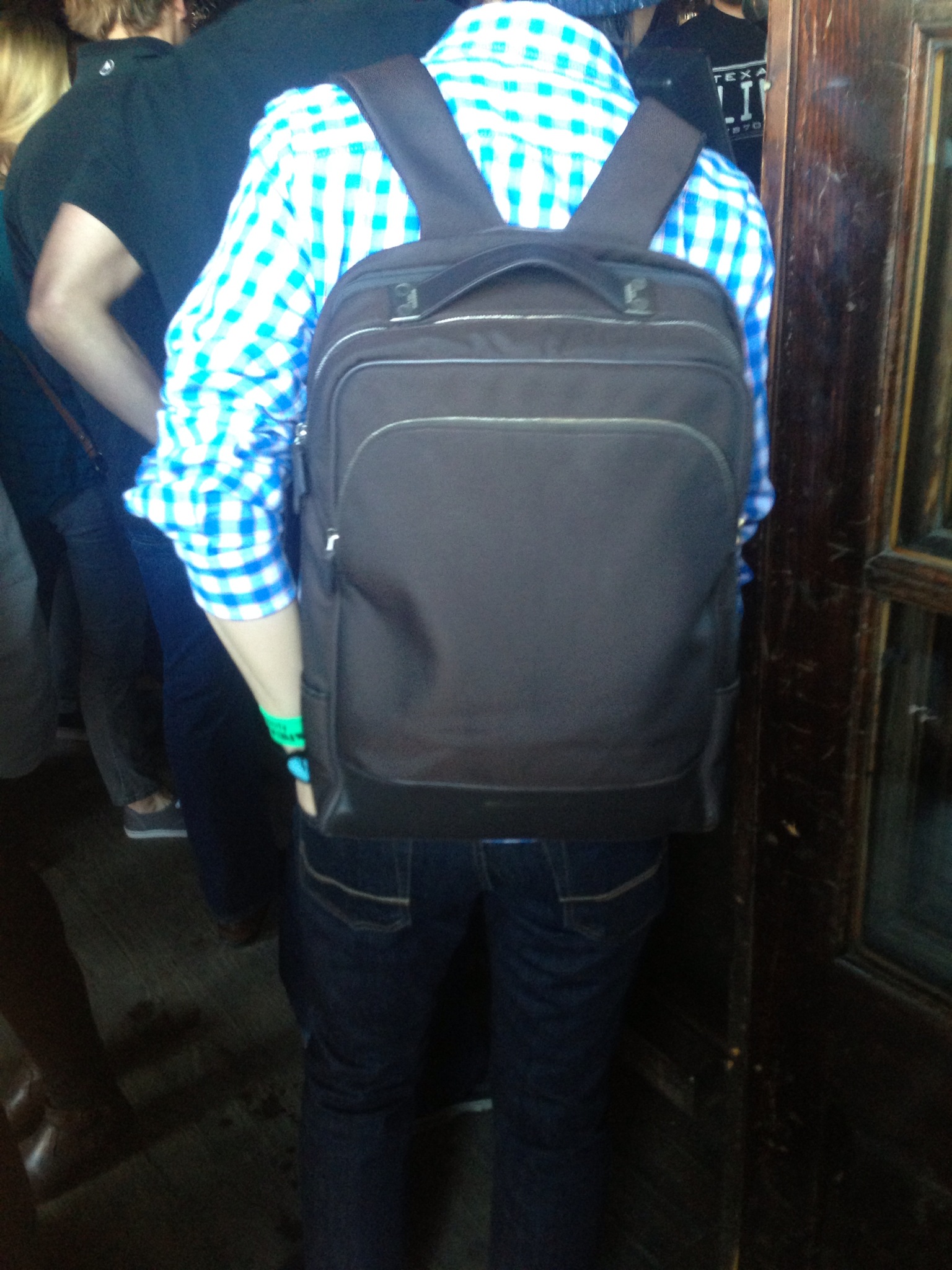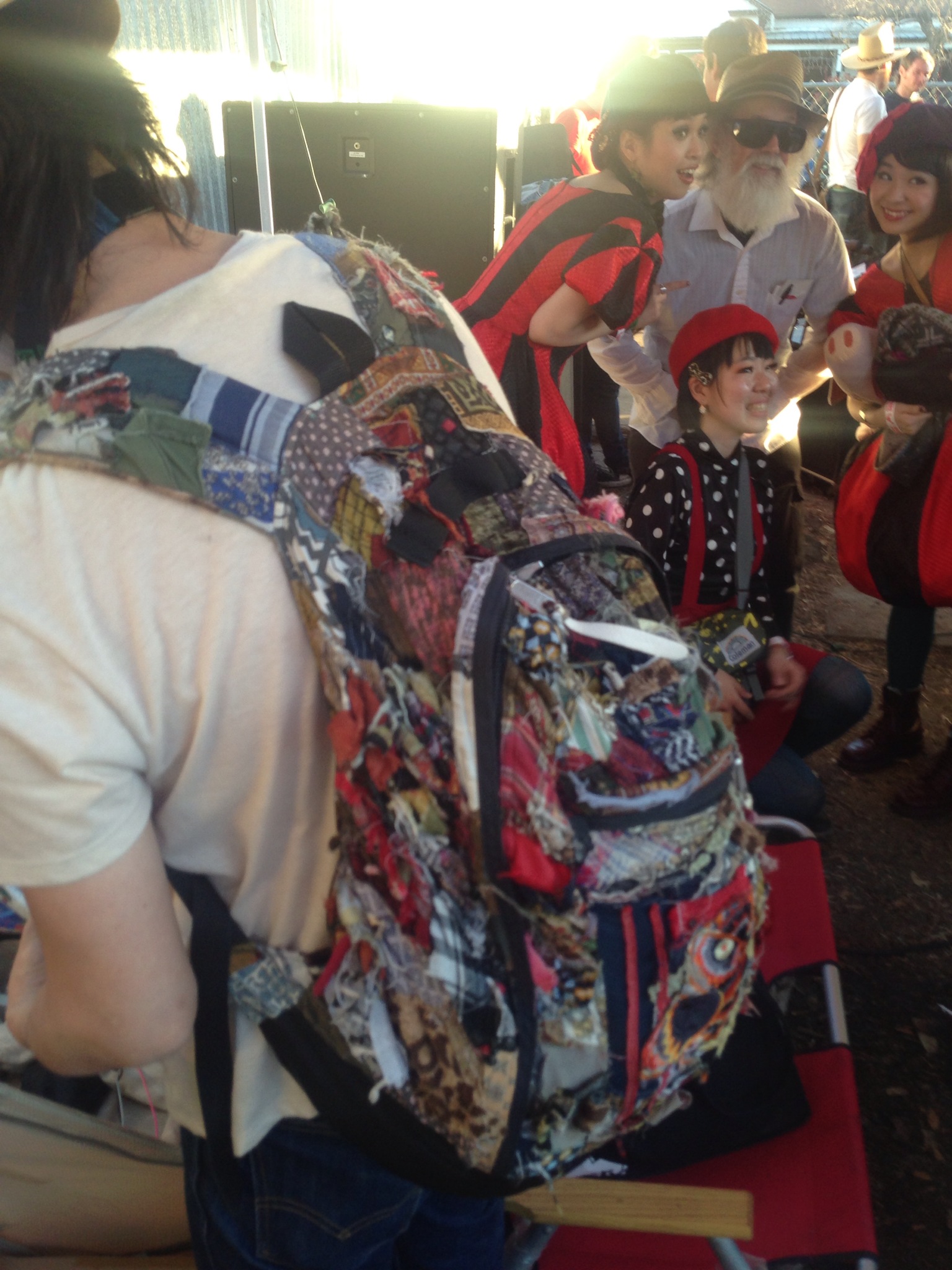 - My favorite backpack I spotted during all of SXSW 2013. Worn by a Japanese dude traveling with some bands. He said he purchased the pack as is and that it was based off of a Gregory Pack (not sure if he meant it was made by Gregory or a copied design/pattern). Wish I could’ve captured more detail.
