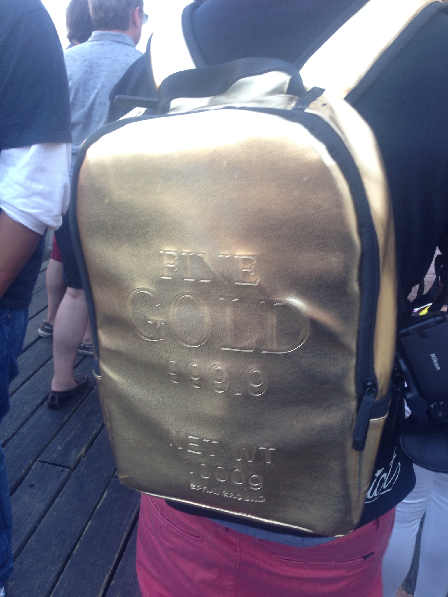 - “FINE GOLD 999.9 NET WT 1000g” backpack