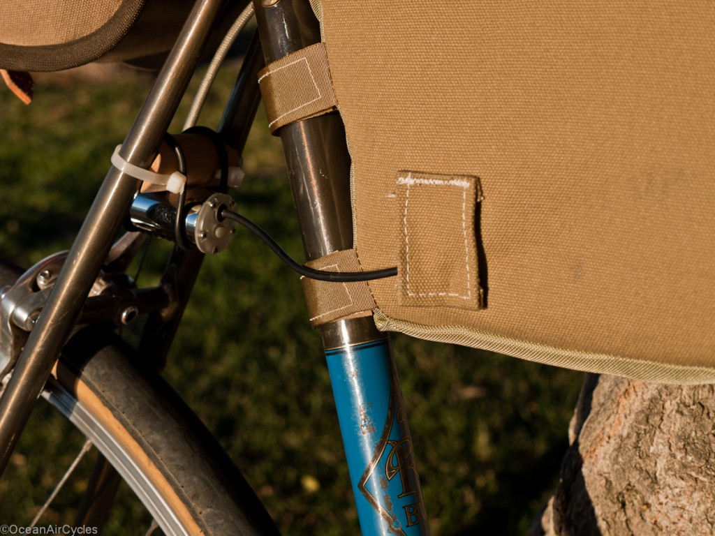 If you get the chance to take a good look at the images and read Rob’s post about it, you will notice the extra length of detail Rob has put into. Down the wiring for his tail light, the velcro attachment to the frame – allowing you to remove the bag when not in use, etc.