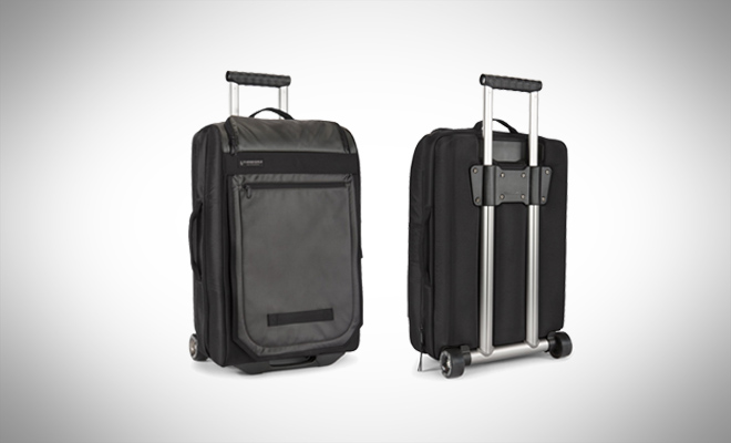 Timbuk2 Copilot rolling luggage — I absolutely love this. It has skate wheels, is semi-structured, offers good organization, and has held up well over the past couple of years of travel.